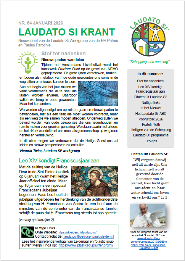 Aflevering 54 van de Laudato Si Krant is onlangs verschenen. Ook beschikbaar in een digitale versie (PDF).