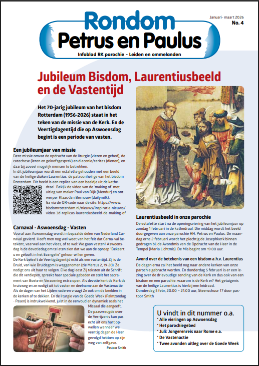 Er is weer een nieuwe aflevering verschenen van het parochieblad Rondom Petrus en Paulus (januari-maart 2026).